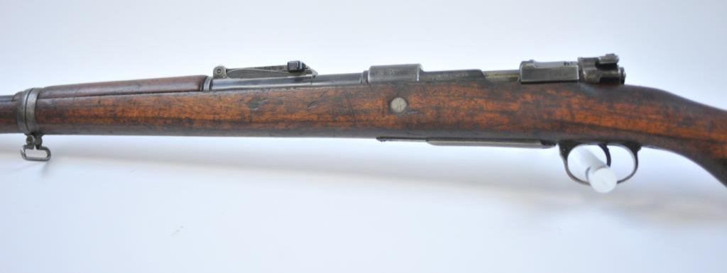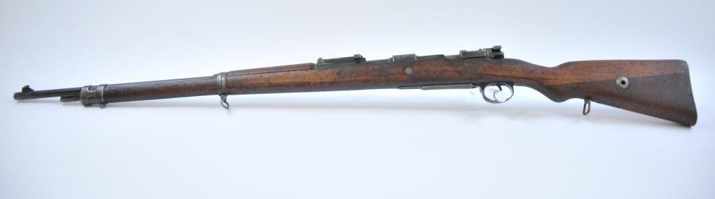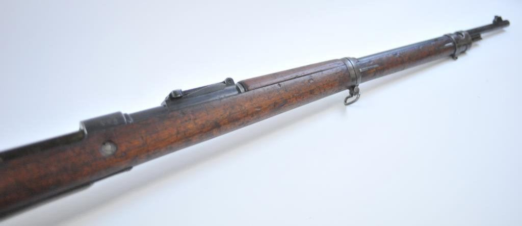 Arsenal mark on the breech and dated 1916. 8mm with 30” barrel, S/N 9430 and bolt # 4058. Mixed numbers on the small parts. Good overall condition with 50%-70% original blue. Minor scuffs, mars and dings on the metal surfaces. Mechanically sound with good plus bore. (C&R) Est.: $250-$500