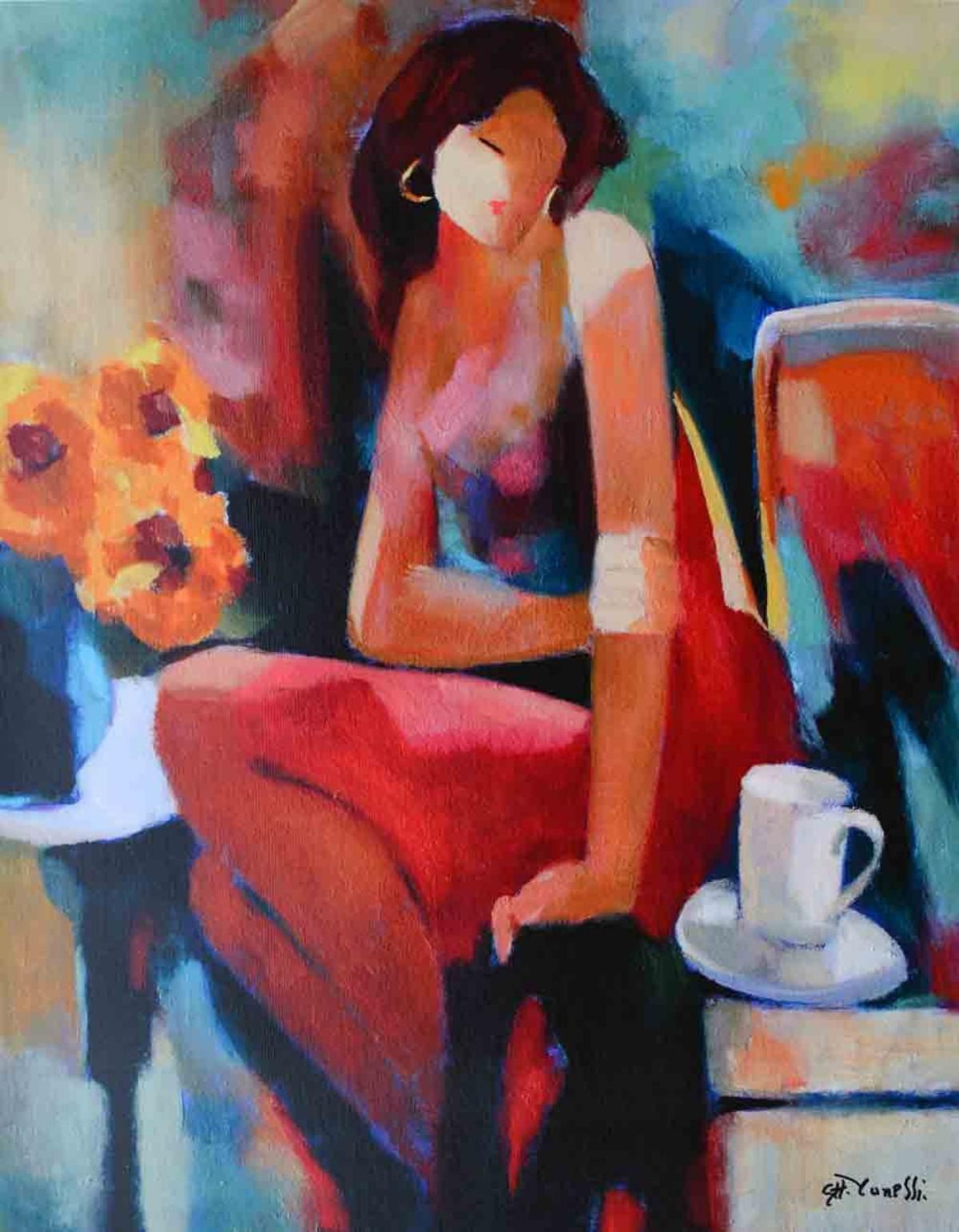 Artist: Gholam Yunessi - Title: Lady - Medium: Fine Art Giclee on Canvas - Signature: Hand Signed by the Artist - Image Size: Approximately 30 inches x 24 inches - Framed: Unframed on Unstretched Canvas - Details: This work comes with a Certificate of Authenticity - Biography: Gholam Yunessi's talent has been molded through years of dedication to the masters of his native Tehran - starting with one of Persia's most famous sculptors, his uncle Esamaeel Yunessi. At the young age of five, Gholam's creative foundations were nurtured and shaped by this familial guide. - In high school, Gholam's talent continued to develop in drawing and charcoal renderings under the guidance of the renowned Persian artist Shaness. Gholam ultimately went on to study the history and technique of fine art painting at the Tehran College of Fine Art. Yunessi finally brought his rich balance of near-eastern and European influences to America, where he has continued to create and produce work that has been recognized and exhibited around the world since 1972.