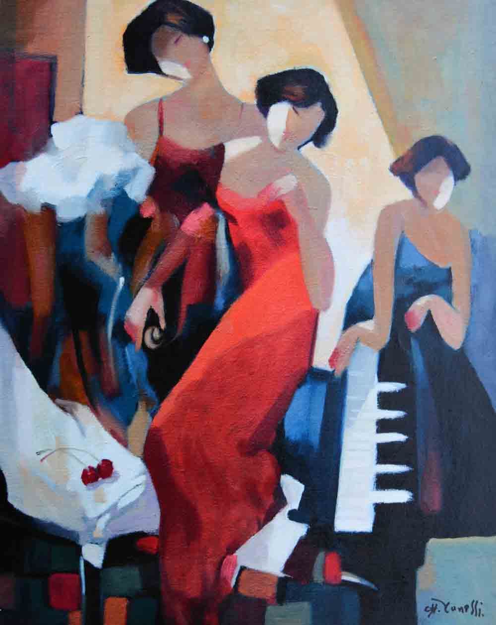 Artist: Gholam Yunessi - Title: Musical Trio - Medium: Fine Art Giclee on Canvas - Signature: Hand Signed by the Artist - Image Size: Approximately 24 inches x 20 inches - Framed: Unframed on Unstretched Canvas - Details: This work comes with a Certificate of Authenticity - Biography: Gholam Yunessi's talent has been molded through years of dedication to the masters of his native Tehran - starting with one of Persia's most famous sculptors, his uncle Esamaeel Yunessi. At the young age of five, Gholam's creative foundations were nurtured and shaped by this familial guide. - In high school, Gholam's talent continued to develop in drawing and charcoal renderings under the guidance of the renowned Persian artist Shaness. Gholam ultimately went on to study the history and technique of fine art painting at the Tehran College of Fine Art. Yunessi finally brought his rich balance of near-eastern and European influences to America, where he has continued to create and produce work that has been recognized and exhibited around the world since 1972.