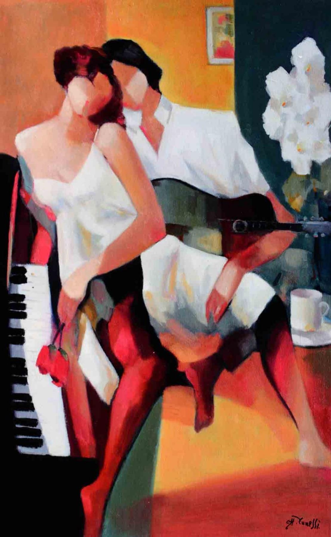 Artist: Gholam Yunessi - Title: Romantic Courtship - Medium: Fine Art Giclee on Canvas - Signature: Hand Signed by the Artist - Image Size: Approximately 36 inches x 24 inches - Unframed on Unstretched Canvas - Details: This work comes with a Certificate of Authenticity - Biography: Gholam Yunessi's talent has been molded through years of dedication to the masters of his native Tehran - starting with one of Persia's most famous sculptors, his uncle Esamaeel Yunessi. At the young age of five, Gholam's creative foundations were nurtured and shaped by this familial guide. - In high school, Gholam's talent continued to develop in drawing and charcoal renderings under the guidance of the renowned Persian artist Shaness. Gholam ultimately went on to study the history and technique of fine art painting at the Tehran College of Fine Art. Yunessi finally brought his rich balance of near-eastern and European influences to America, where he has continued to create and produce work that has been recognized and exhibited around the world since 1972.