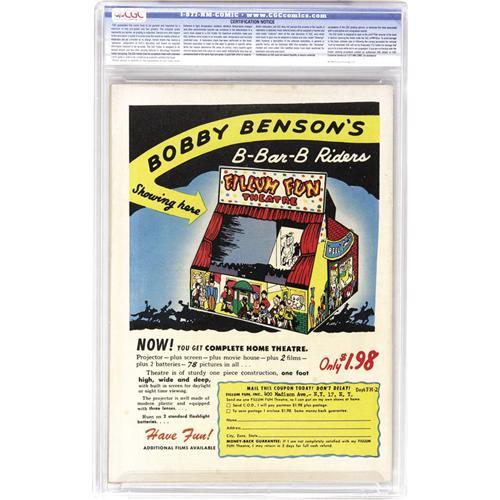 <B>Ghost Rider #2 Davis Crippen ("D" Copy) pedigree (Magazine Enterprises, 1950) CGC VF+ 8.5 Cream to off-white pages.</B></I> Hey Frank Frazetta fanatics, this is the only copy of this issue graded above 7.0 by CGC to date. Frazetta's cover visuals are striking indeed, and for interior art M.E. turned to Dick Ayers, who drew every story to feature this character. This issue is also known as <B>A-1 Comics</B></I> #29. Overstreet 2006 VF 8.0 value = $456; VF/NM 9.0 value = $721. CGC census 7/06: 1 in 8.5, none higher. <I>From the Crippen Collection.</B></I> <BR><BR><B>Important notice:</B> Heritage usually auctions material at the rate of 200-250 lots per hour. On some occasions eBay Live bid software or the Internet may not be able to keep up with the pace of the auction. We recommend placing a realistic absentee bid now as insurance to avoid disappointment. Occasionally the auctioneer may eliminate or reject an eBay Live bid, and the auctioneer may also reopen a lot after the close of the eBay live bidding (usually because we missed an audience bid), and may reject your bid even if it shows you as the winning bidder. By bidding via eBay Live, you agree that Heritage may award the lot to another bidder at its sole discretion under the circumstances described above or any other reasonable circumstances. Since eBay bids are not shown to us until we open the lot on the floor, we treat those bids just like floor bids. In most cases the floor responds before the eBay bid is presented to us, due to Internet lag time, so for consistency we have made it a policy that floor bids are always considered first over tie eBay live bids. Also please note that all Heritage lots purchased through eBay Live carry a 22.5% Buyer's Premium. Please make sure you read the Terms and Conditions before you bid. This lot is being auctioned in conjunction with a live floor auction by Heritage Auction Galleries. All final auction and invoice information will be supplied by Heritage Auction Galleries, and all other information should be considered preliminary. Lot:41001 <BR><BR><B>Winning Notification and Billing:</B> After the FINAL session in this auction is complete, Heritage will send e-mail and snail mail invoices. This process normally takes several days. All final auction and invoice information will be supplied by Heritage Auction Galleries, and all other information should be considered preliminary. <BR><BR>This auction will be conducted on a live auction floor and over the Internet through eBay Live. If you choose to place an absentee bid, please take a moment to <font color='#0000ff'><u><a href='http://pages.ebay.com/liveauctions/help/before/laabsentee.html'>learn how eBay Live absentee bidding works</a></u></font><font color='#000000'>