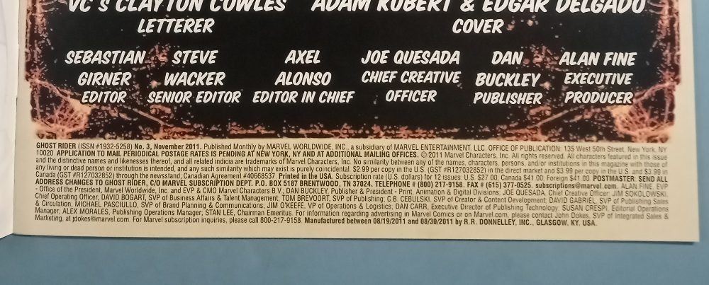 Ghost Rider: Fear Itself #3 (Marvel, 2011) Comic Book - Direct Edition