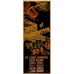 Ghost of Frankenstein (Universal, 1942). Insert (14" X 36"). The last of Universal's solo Frankenstein films features Lugosi, who returns to thwart a plan to replace the monster's brain. Lon Chaney, Jr. stars as the monster, and this was one of Dwight Frye's very last roles. Fine on Paper. Important notice: We expect to be auctioning lots at the rate of 200-250 per hour. Sometimes eBay Premier live bid software cannot keep up with that pace, so we strongly recommend that you place a realistic proxy bid now as insurance to avoid disappointment. Also please note that all Heritage/CAA lots purchased through eBay Premier carry a 20% Buyer's Premium.