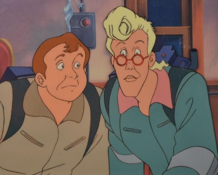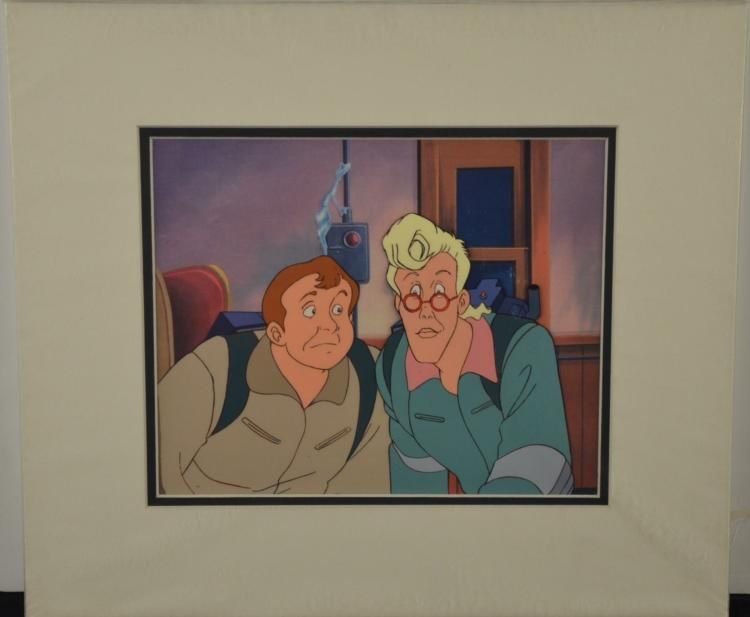 Here is an original animation cel used in the production of the 1986 animated series The Real Ghostbusters Here are two of the original Ghostbusters, Dr. Ray Stantz and Dr. Egon Spengler, in a haunted house and ready for action! * Medium: Hand painted cel acetate with printed backgroundImage size: 8 x 10 inchesPresentation: Double matted in white and black, ready for framingMatte size: 14 x 16 inchesCondition: ExcellentCertificate of Authenticity: Included