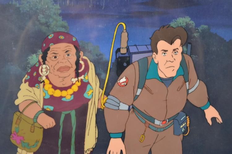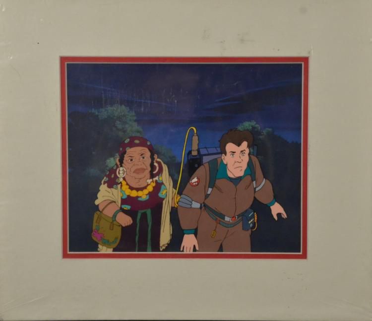 This is an original animation cel used in the production of the 1986 animated series The Real Ghostbusters. A gypsy woman is here with Peter Venkman, probably helping him track a ghost. * Medium: Hand painted cel acetate with printed backgroundImage size: 8 x 10 inchesPresentation: Double matted in white and red, ready for framingMatte size: 14 x 16 inchesCondition: ExcellentCertificate of Authenticity: Included