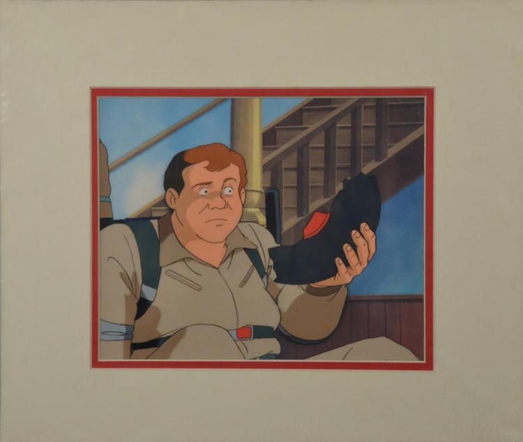 Here is an original animation cel used in the production of the 1986 animated series The Real Ghostbusters. Ray is holding a broken record here. This is a double layer cel, with encroaching shadows appearing as darker areas on the image. * Medium: Hand painted cel acetate with printed backgroundImage size: 8 x 10 inchesPresentation: Double matted in white and red, ready for framingMatte size: 14 x 16 inchesCondition: ExcellentCertificate of Authenticity: Included