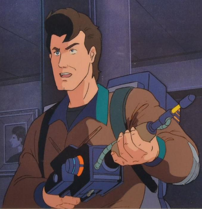 This is an original animation cel used in the production of the 1986 animated series The Real Ghostbusters Here is the ladies man of the Ghostbusters, the laid back Dr. Peter Venkman. Medium: Hand painted cel acetate with printed backgroundImage size: 8 x