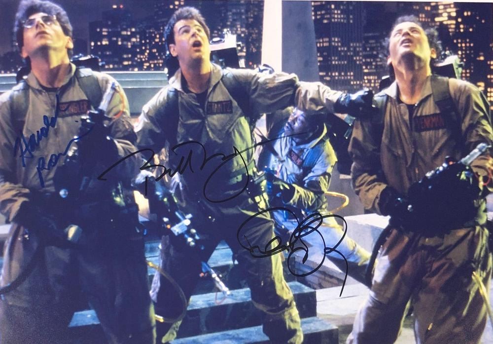 Ghostbusters cast signed movie photo autographed by Bill Murray, Harold Ramis and Dan Aykroyd. 8x10 inches