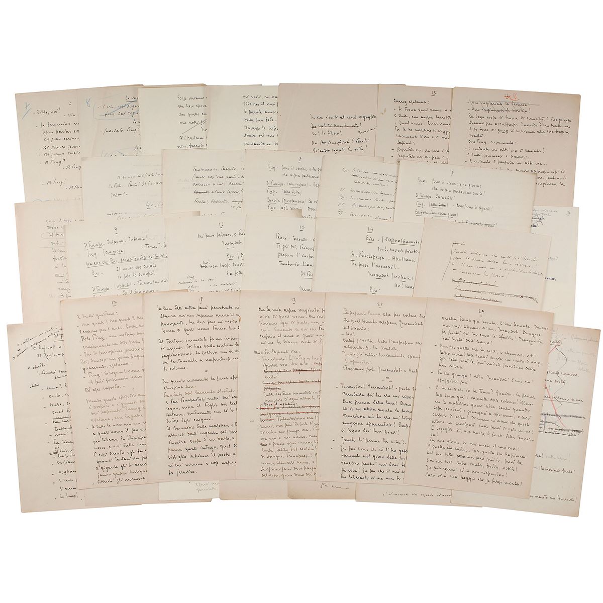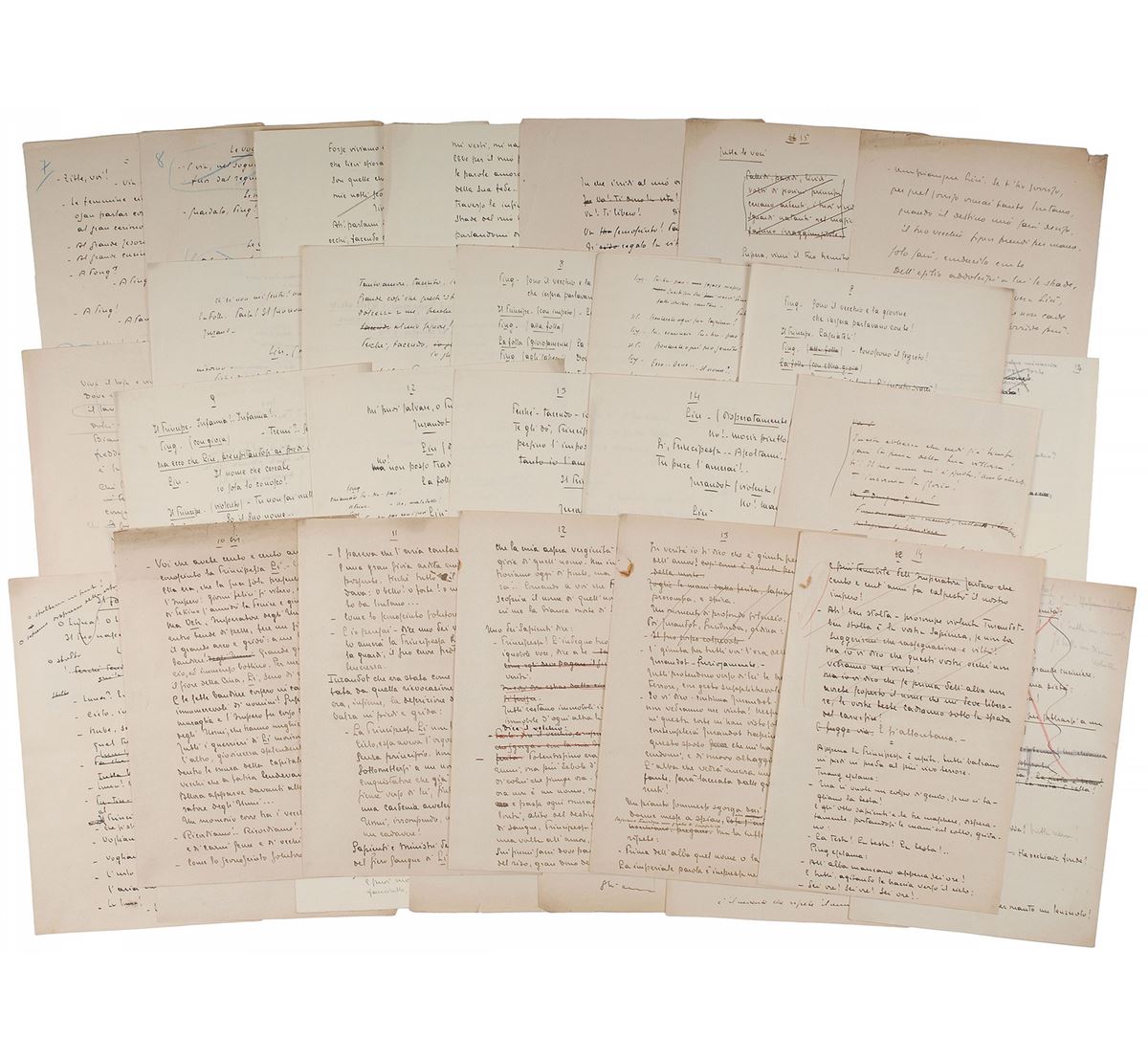 Amazing archive of handwritten drafts and fragments by Giuseppe Adami for the libretto of Puccini’s last opera, Turandot, totaling about 585 pages, circa early 1920s. The substantial collection comprises all three acts of the opera in various forms and stages. In overall fine condition.