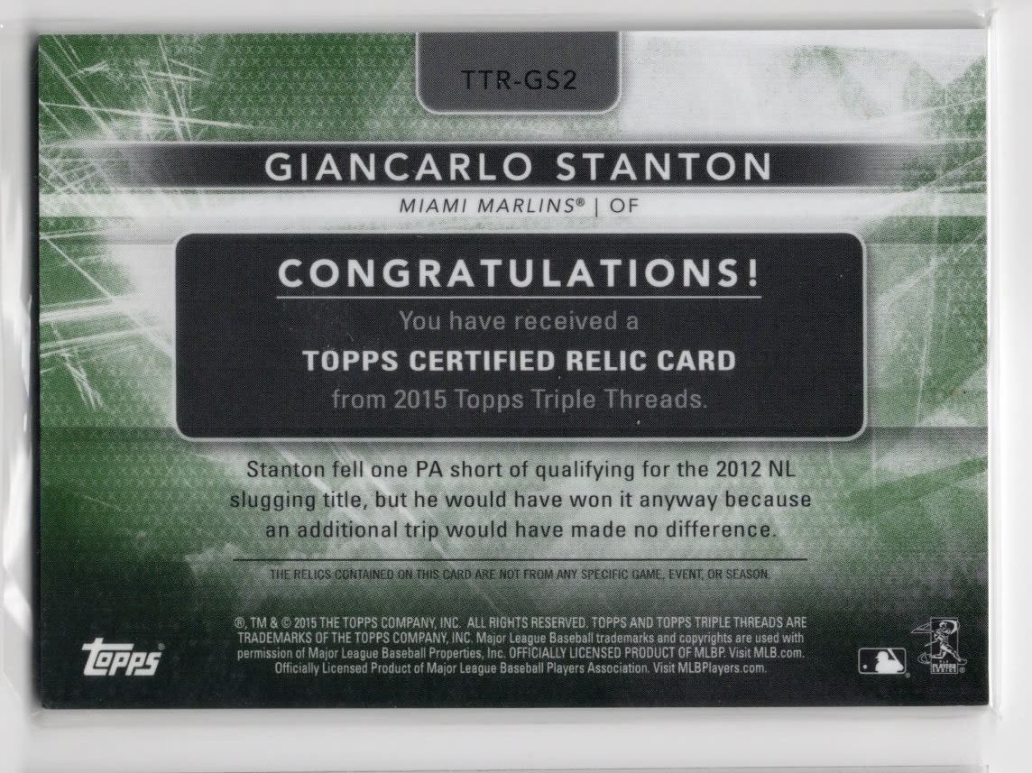 Giancarlo Stanton 2015 Topps Triple Threads Relics #TTR-GS2 Front