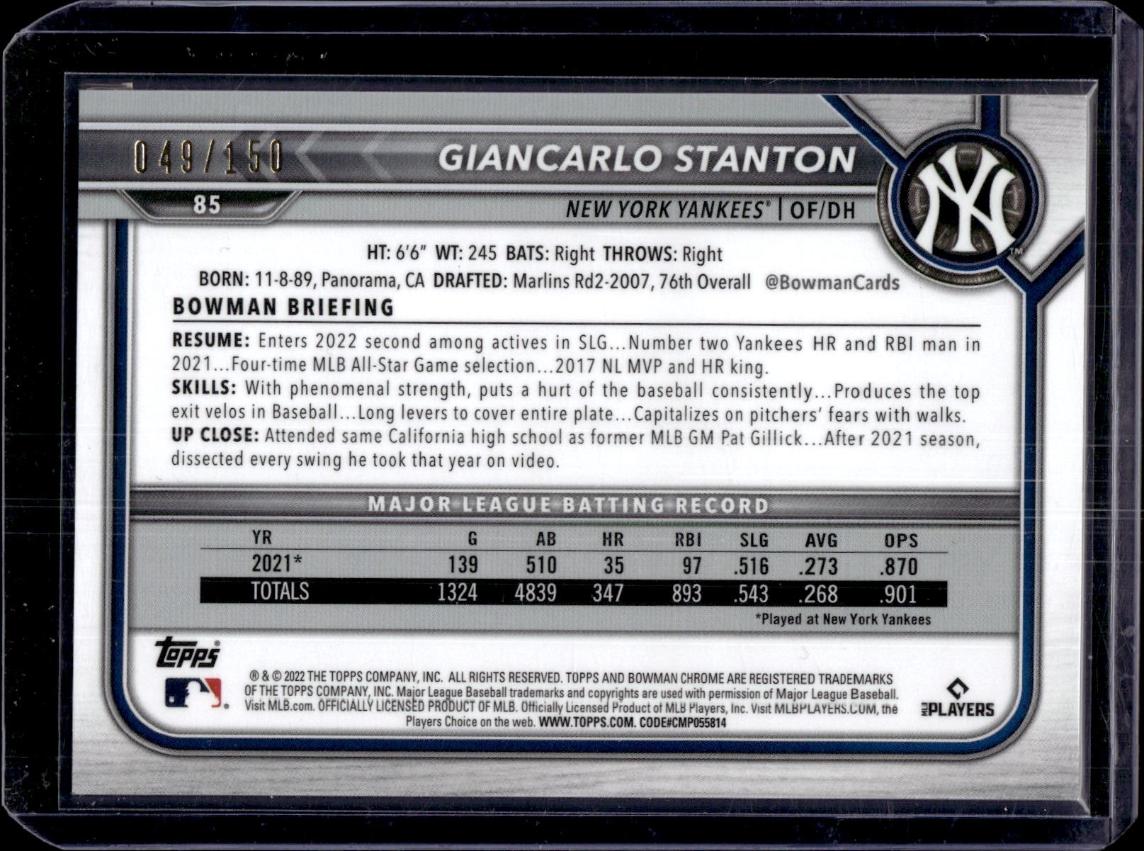 Giancarlo Stanton Blue Refractor /150 2022 Bowman Chrome #85