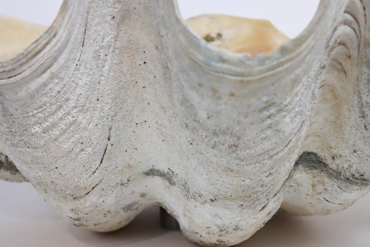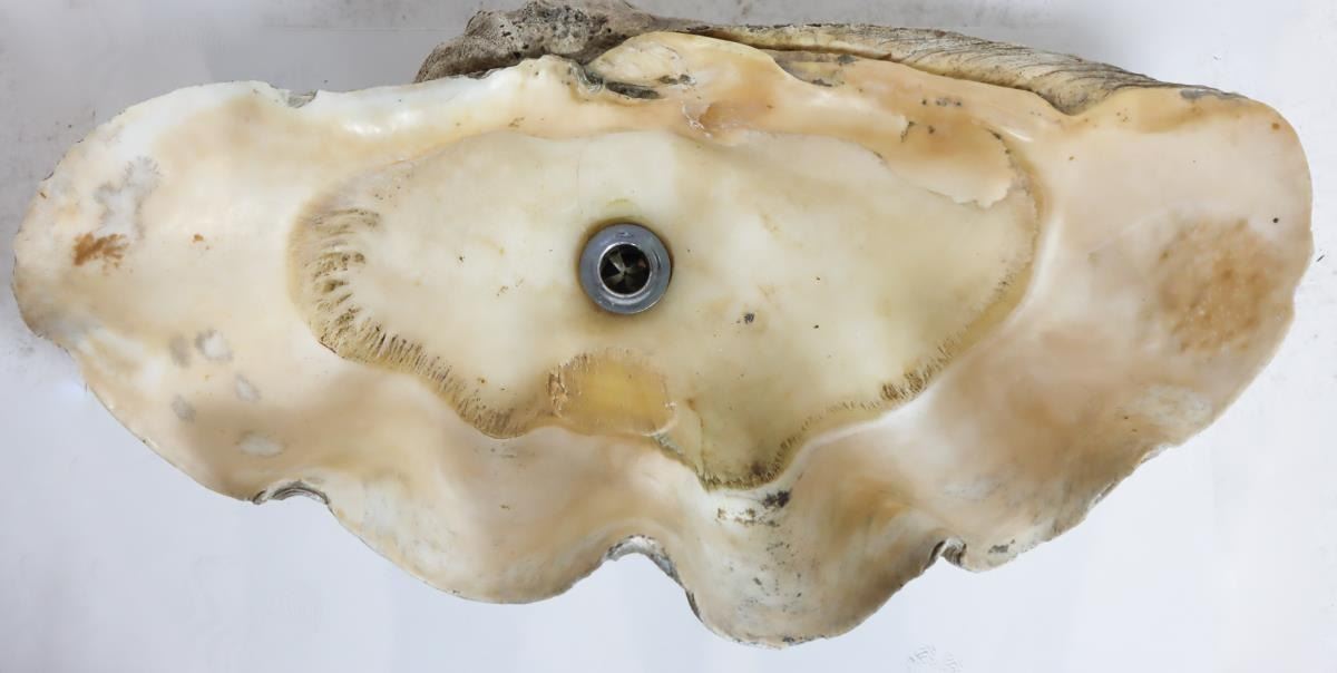 Possibly Tridacna Giga, 28 inches, most likely from the South Pacific. Used as fountain/sink.