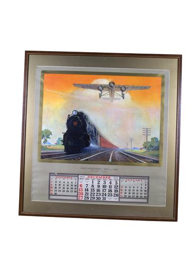 Giant Conquerors Picture of Train & Plane Dec 1931 Calendar 32"x 34"