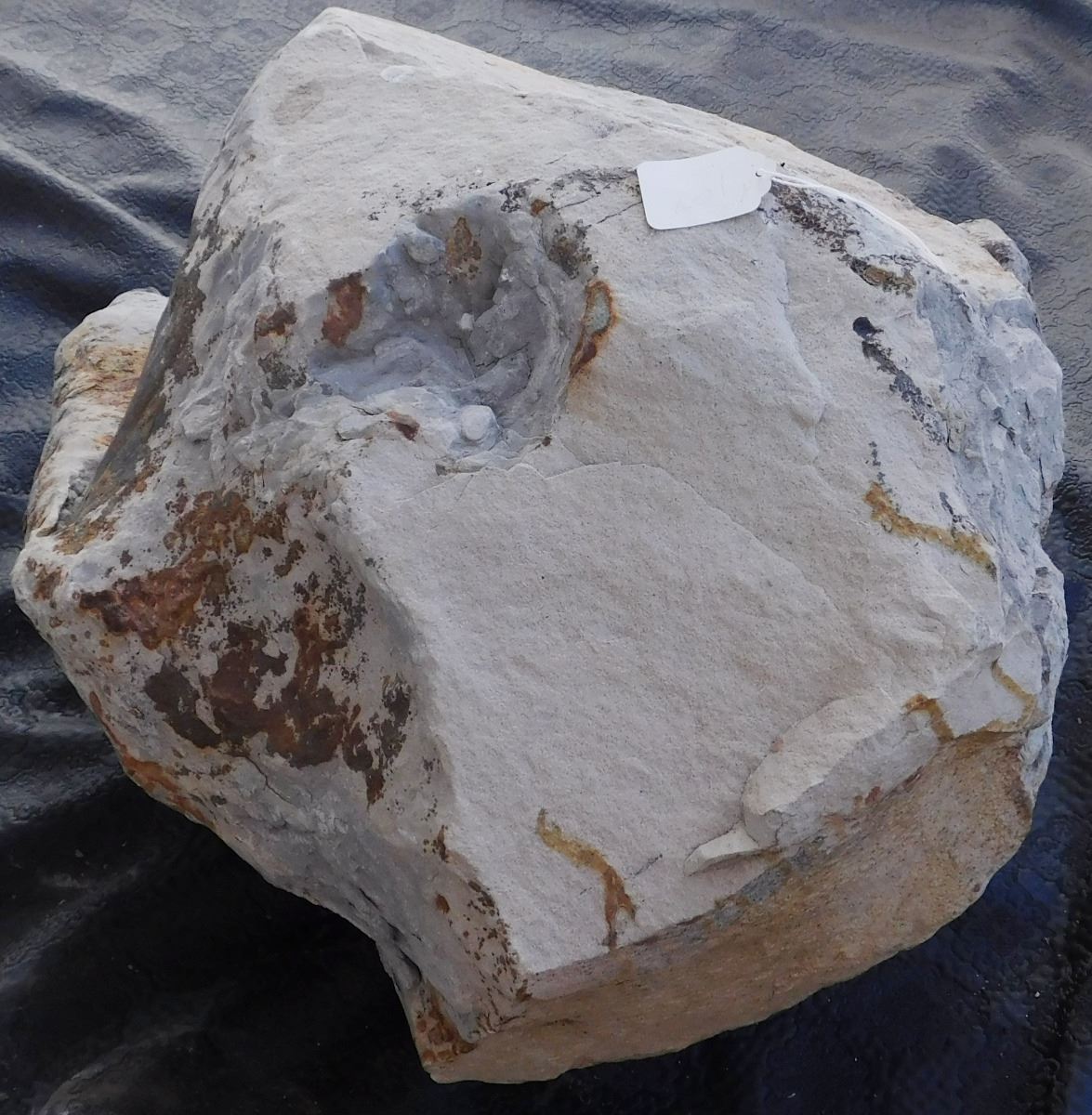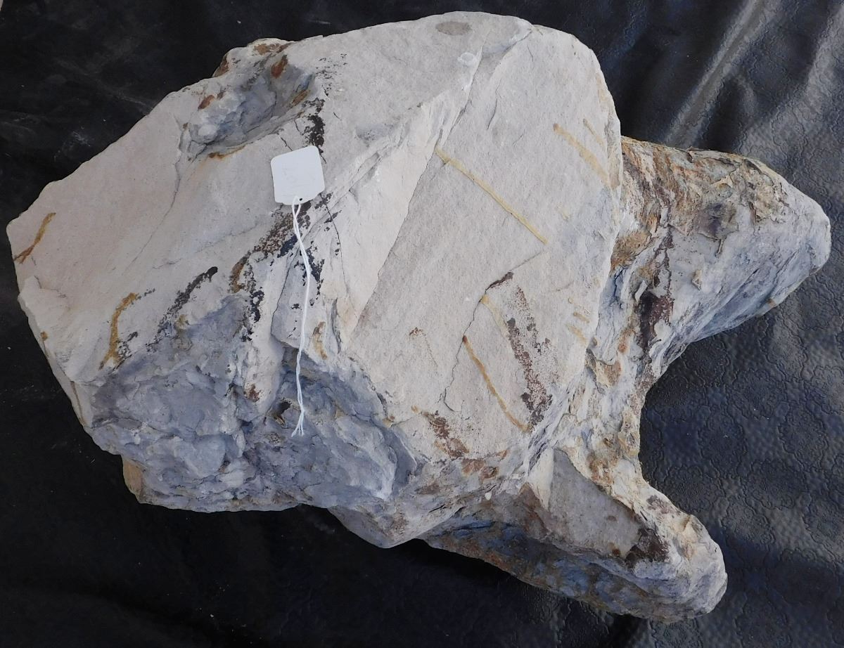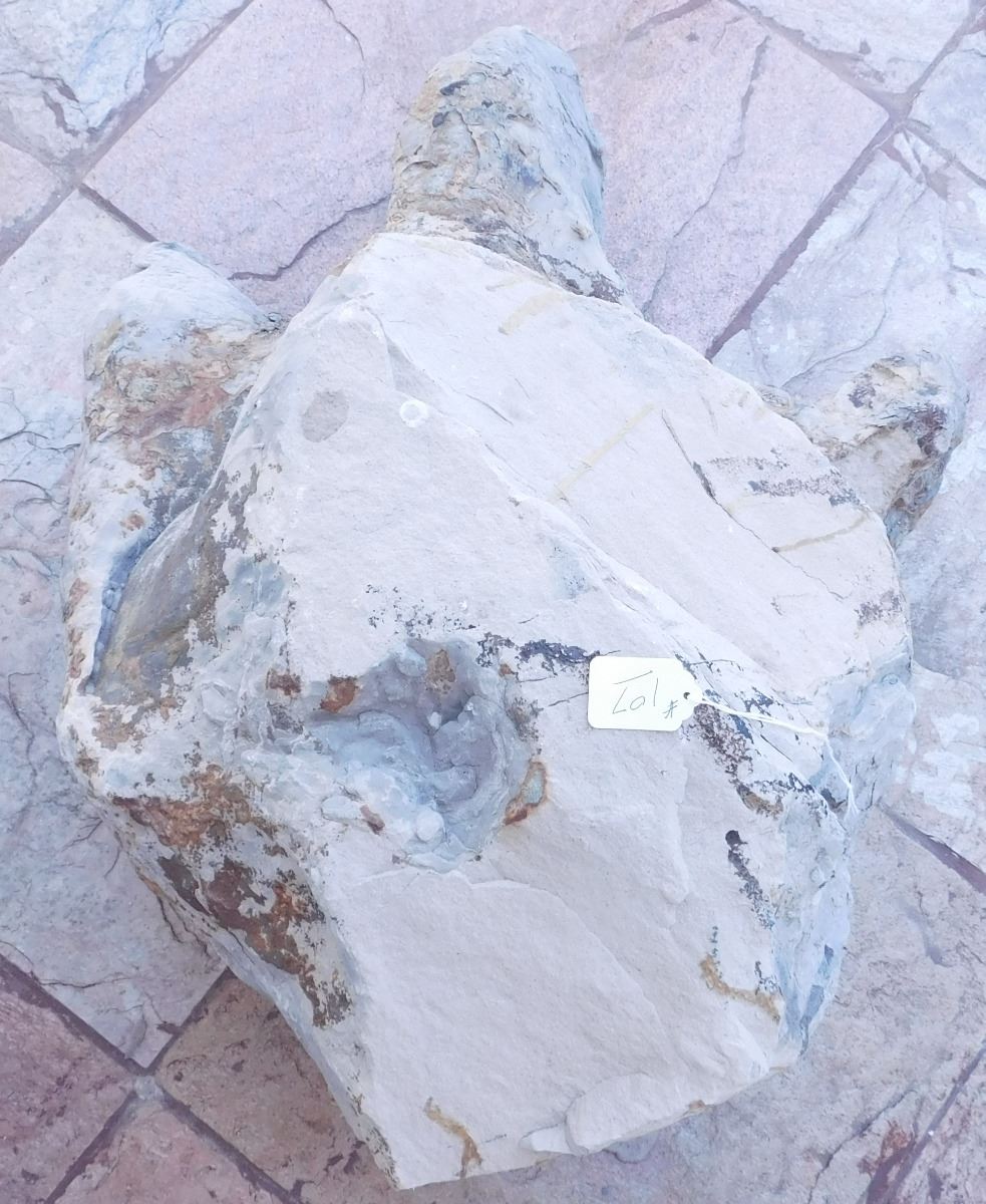 Giant Dinosaur Footprint, circa 65 million years old. Made of fossil and possibly sandstone, this large item is 24" x 19" x 15". Found in a coal mine in Utah. The dinosaur stepped in mud, the footprint filled up and contents turned to stone. Weighs about 200 pounds. Will not ship. Condition: Good, see images. Shipping: No shipping service will be provided for this item. Buyer or registered agent must pick up item.