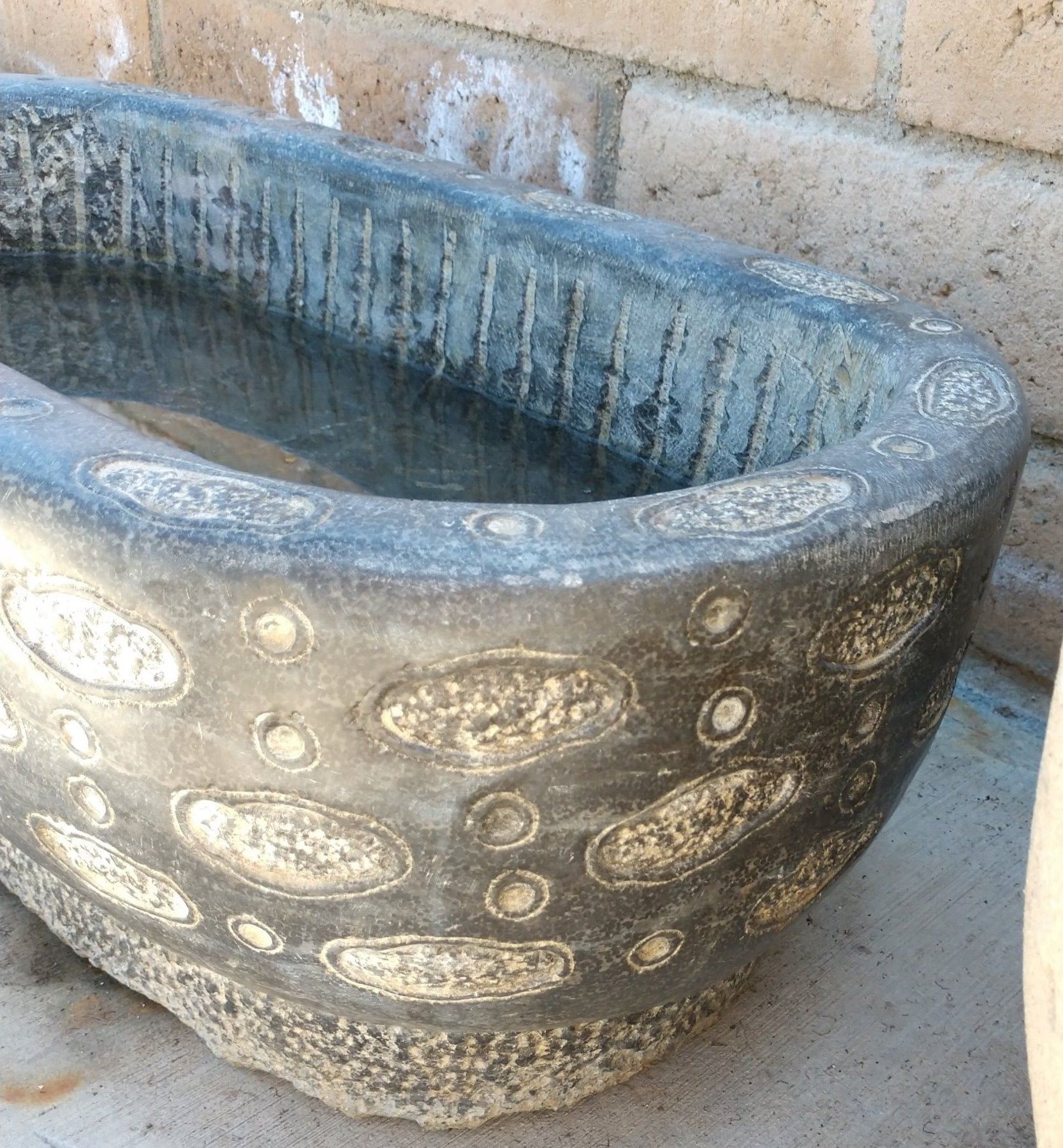 Giant Jade Engraved Bowl, Ming period. Made of jadeite, the item meaures 23" x 10" x 8". China. Heavily engraved throughout, weighing approx. 200 pounds. Will not ship. Condition: Good, see images. Shipping: Will not ship, buyer must arrange shipping through 3rd party.