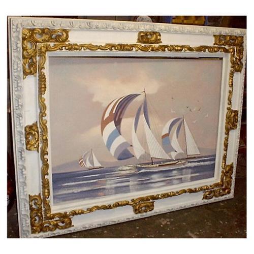 <table width="100%" border="0" cellspacing="0" cellpadding="4"><tr><td><em> WOW, use to fill big spaces....</em></td></tr><tr> <td width="100%"> Giant Foam Composit Picture Frame.<p>Outside dimensions are: 67 inches by 57 inches, 3 inches thick. Frame may be used in either direction.<p>In excellent condition.<p>Colors are white with gold highlights. For an additional fee the colors can be changed if you desire.<p>Very detailed rich carved look. This picture frame will add elegance and style to any picture your have for your home, a business office, or restaurant decor. </td></tr><tr> <td> </td></tr><tr> <td>Reference #: 1578</td></tr><tr><td>Condition:Excellent</td></tr><tr><td>Year:2003</td></tr><tr><td>Country:USA</td></tr><tr><td>Height:57</td></tr><tr><td>Depth:3</td></tr><tr><td>Width:67</td></tr><tr><td>Title:Giant Picture Frame OD 67"X57"</td></tr><tr><td>Materials:Foam Composit</td></tr><tr><td>Location:Deland, Florida</td></tr></table>