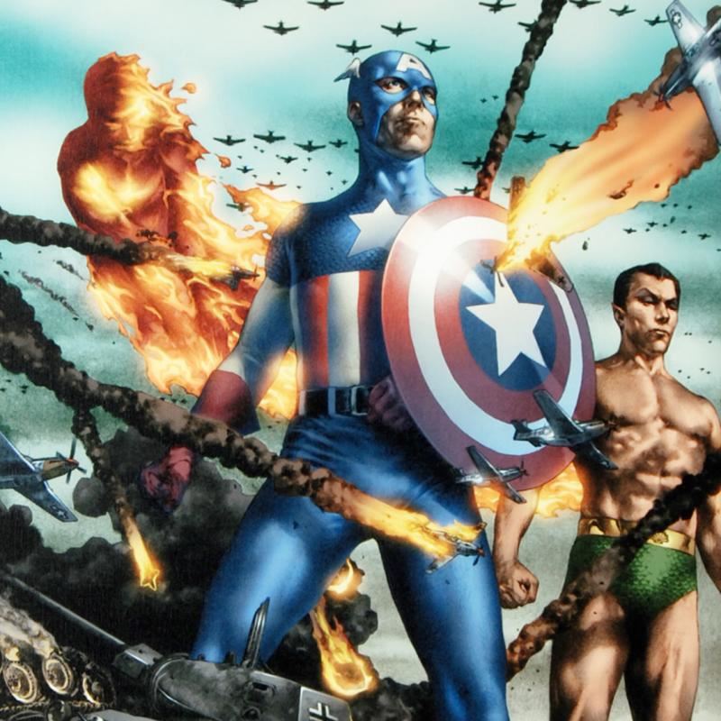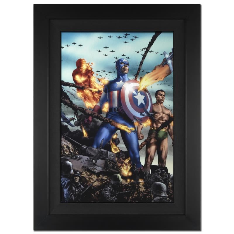 A piece of comic book history, this limited edition, from original art by Jay Anacleto, depicts the giant trio of Captain America, Namor and Human Torch. Efren "Jay" Anacleto is best known for his highly detailed and photo-realistic pencil work on 'Aria' for Image Comics. His most notable Marvel work is from the 'Marvels: Eye of the Camera' series. "Giant-Size Invaders #2" is an extremely limited edition giclee on canvas by Jay Anacleto presented by Marvel Comics, hand signed by the Great Stan Lee (1922-2018) and numbered out of only 10! This piece comes custom framed and ready to hang. Includes Certificate of Authenticity! Measures approx. 25" x 34" (with frame), 18" x 27" (image).