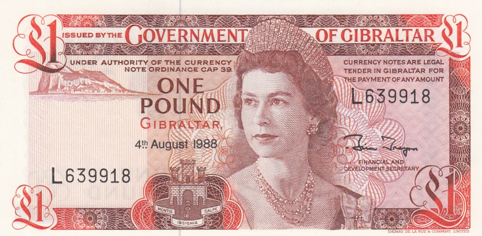 Gibraltar, 1 Pound, 1988, UNC, p20ebr/Queen Elizabeth II portrait, serial number: L 639918