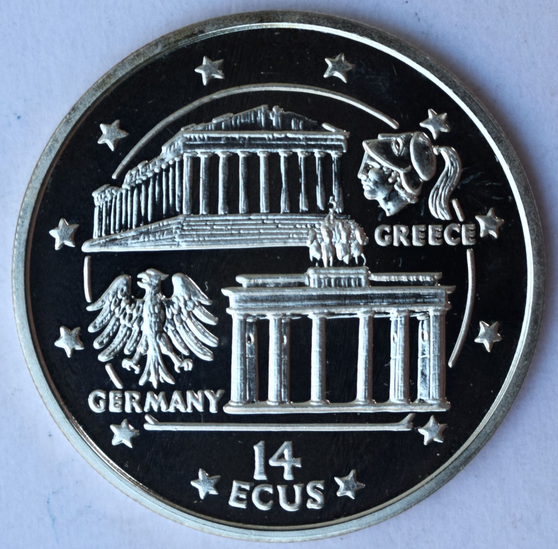 Gibraltar, 14 Ecus 1994 "Europe presidencies Council Greece & Germany" Silver Proof Ultra Heavy Cameo