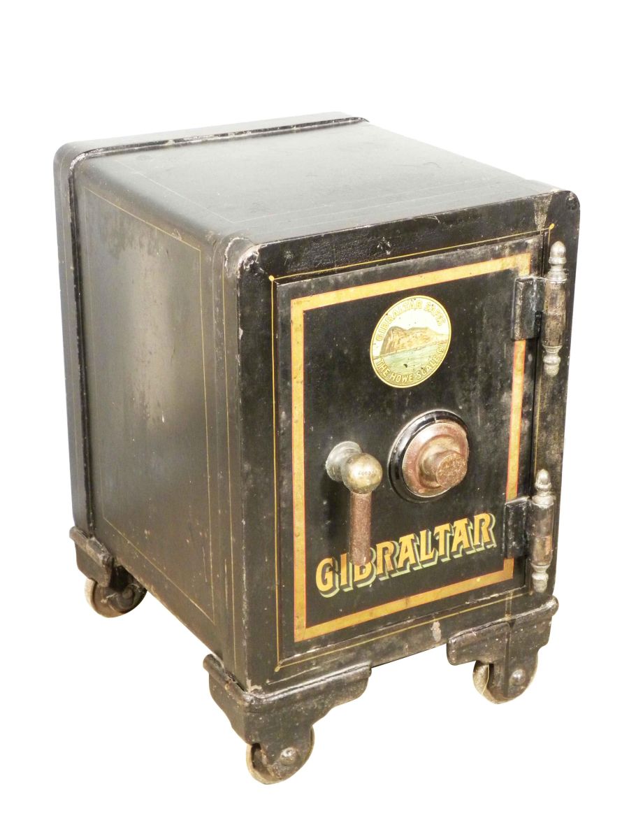 Gibraltar Safe, mfg. by the Howe Scale Company. No combination but open. Inside locking compartment with key. Good original condition. 14 X 21 1/2 X 17 inches.