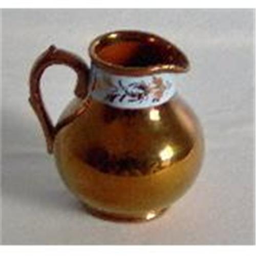 This 19th century copper lustreware blue banded pitcher was made by Gibson and Sons, one of the best-known English copper lustreware producers.</em></td>