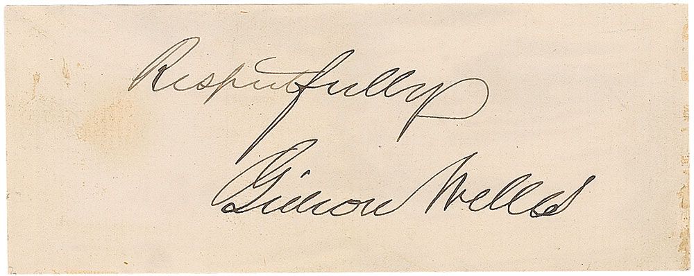 Ink signature, “Respectfully, Gideon Welles,” on an off-white 4 x 1.5 clipped slip affixed to a slightly larger card. In fine condition. Accompanied by an unsigned original carte-de-visite portrait of Welles.