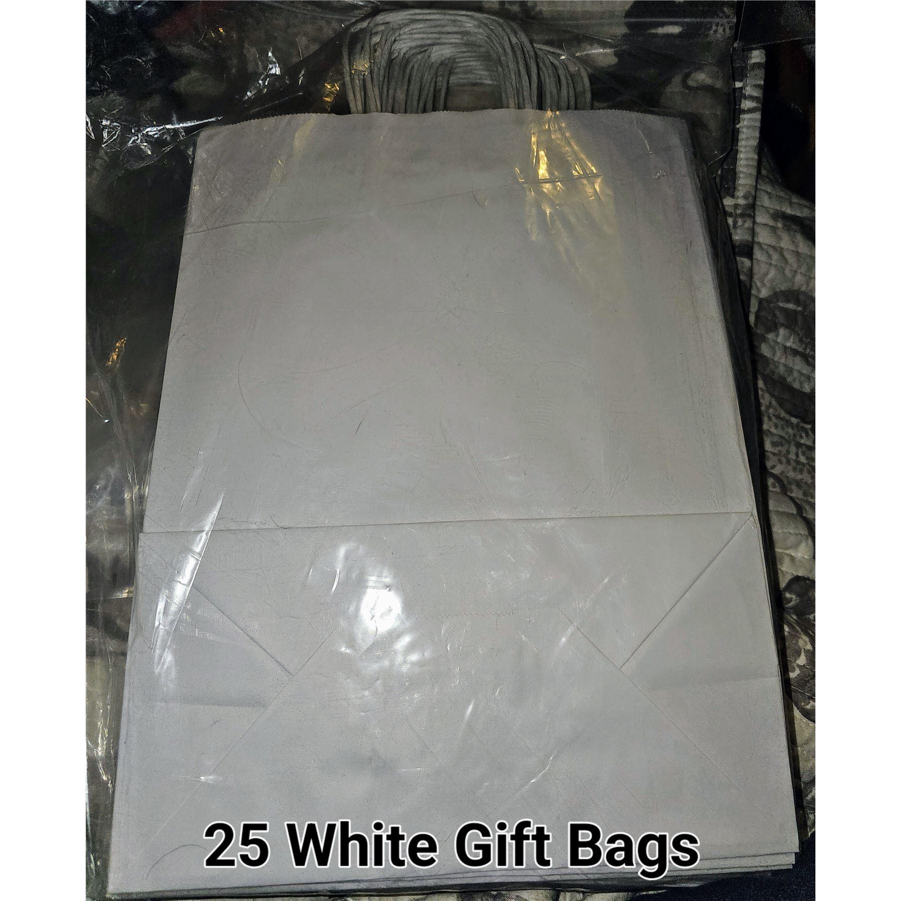 Pack of 25 white paper gift bags, versatile and elegant for any occasion, new.