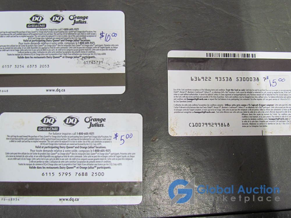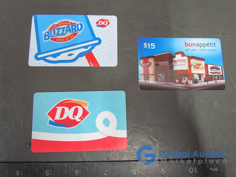 Gift Cards: Bon Appetit $15.00, Dairy Queen $15.00
