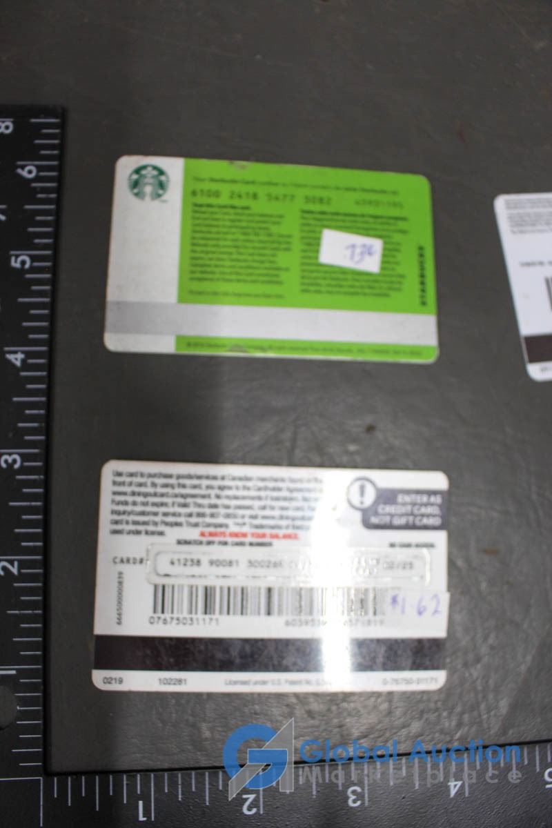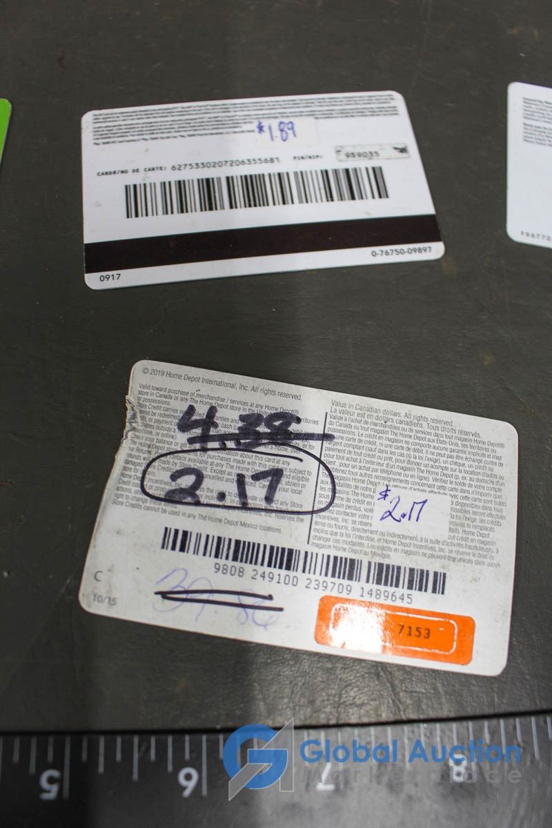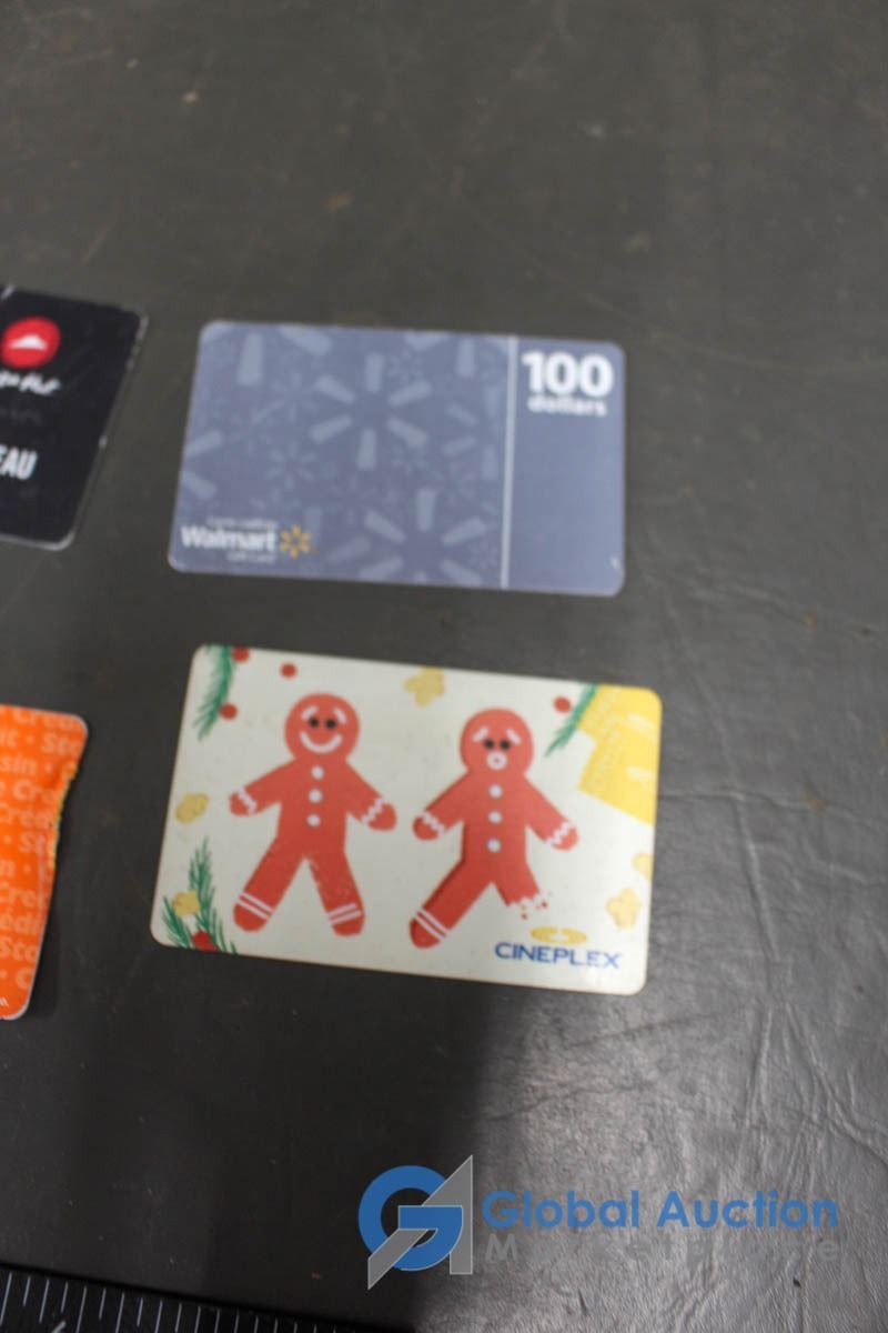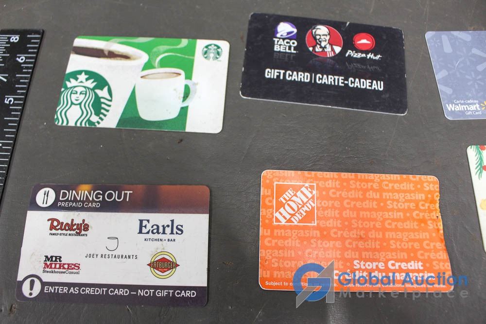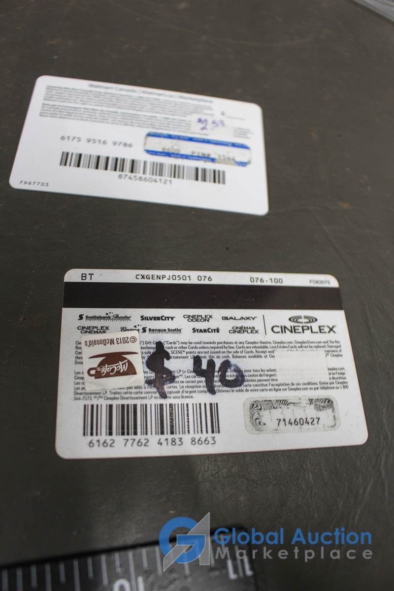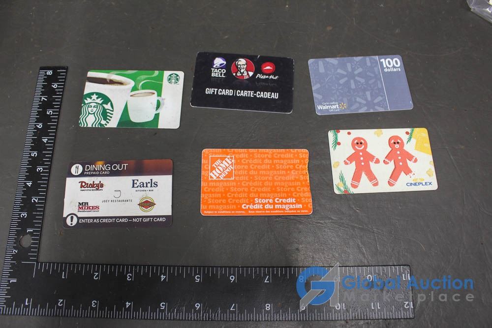 Gift Cards - Cineplex $40, Home Depot $2.17, Dine Out $1.62, Walmart $2.53, KFC $1.89, Starbucks $.7