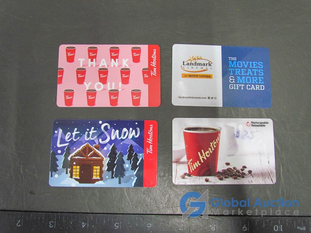 Gift Cards: Tim Horton's & Landmark Theatres $69.37