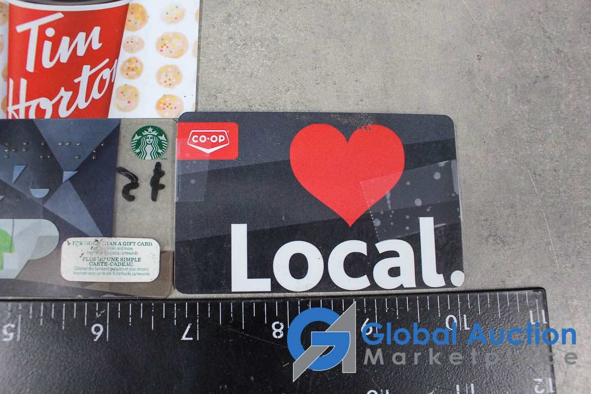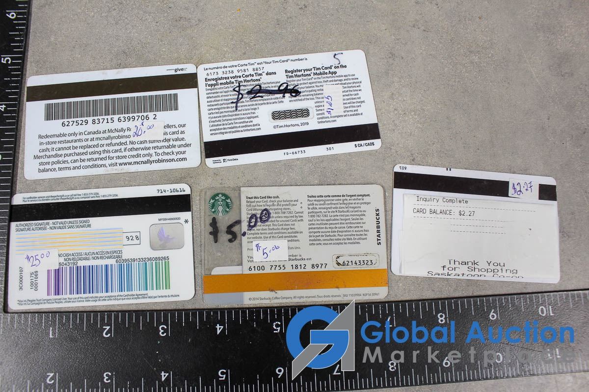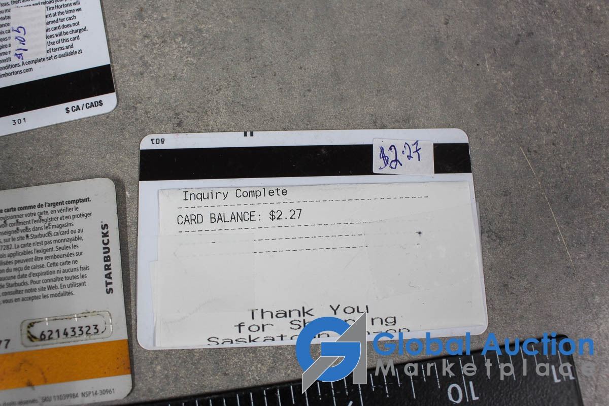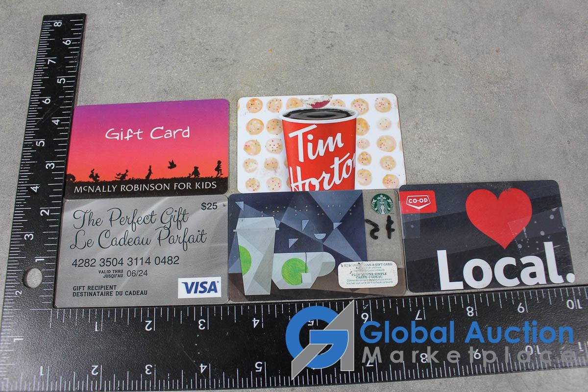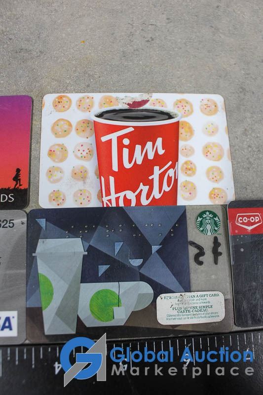 Macnally $20; Starbucks $5; Tim Hortons $1.05; Visa $25; Co-Op $2.27