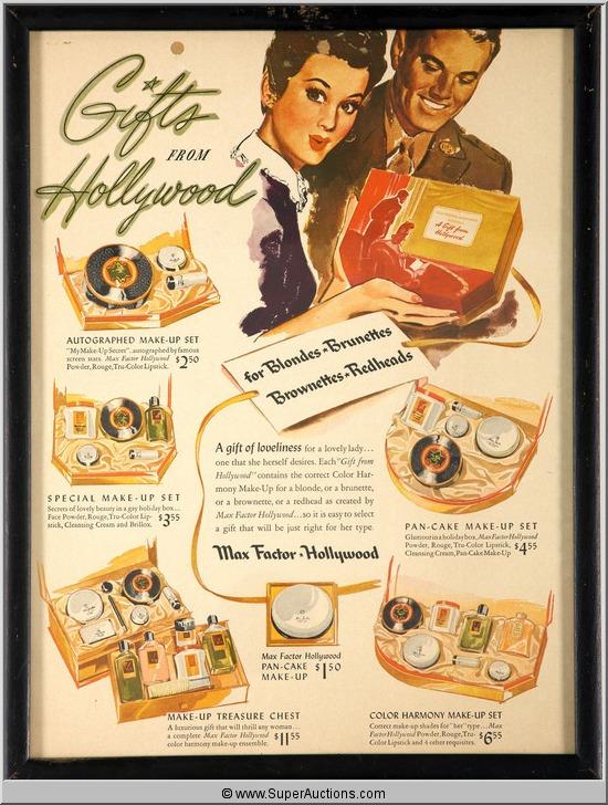 Framed Gifts from Hollywood Make-Up Advertisement 1943 from the Max Factor Collection {11" L x 15" H}