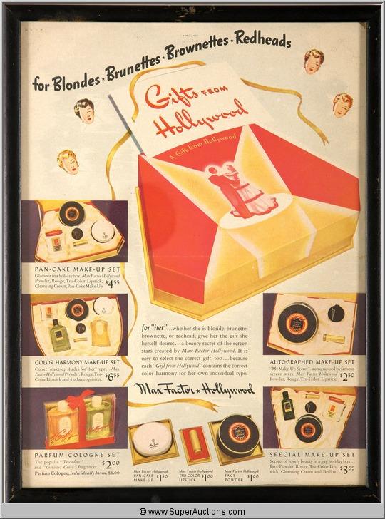 Framed "Gifts from Hollywood" Make-Up Advertisement 1942 from the Max Factor Collection {11" L x 15" H}