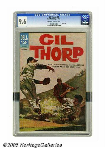 <B>Gil Thorp #1 (Dell, 1963) CGC NM+ 9.6 Off-white to white pages.</B></I> The only issue of the title. Overstreet 2005 NM- 9.2 value = $45. CGC census 2/05: 1 in 9.6, none higher. <I>From the collection of Chris Bell.</B></I>