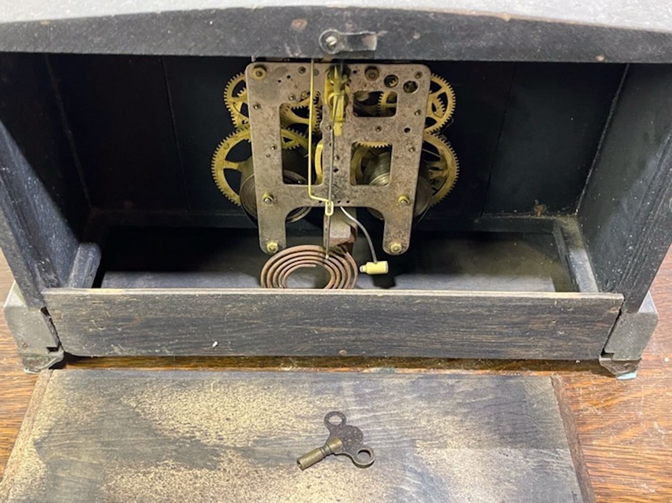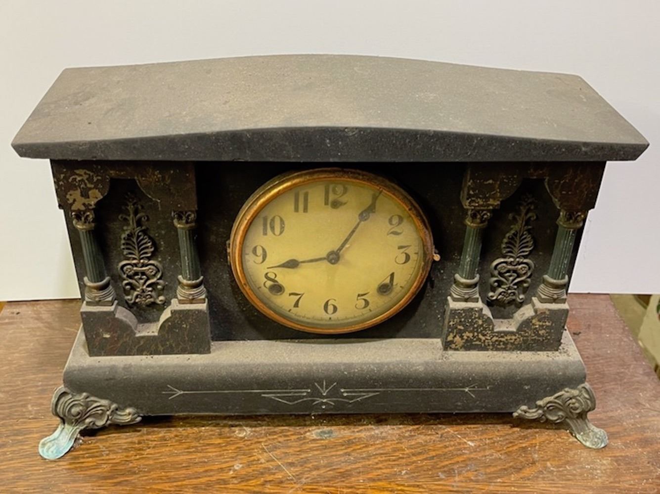 William L. Gilbert Clock Co., Winsted, CT, mantel clock. Ornate with double columns on both sides, incising, key wind, from the lifetime collection.