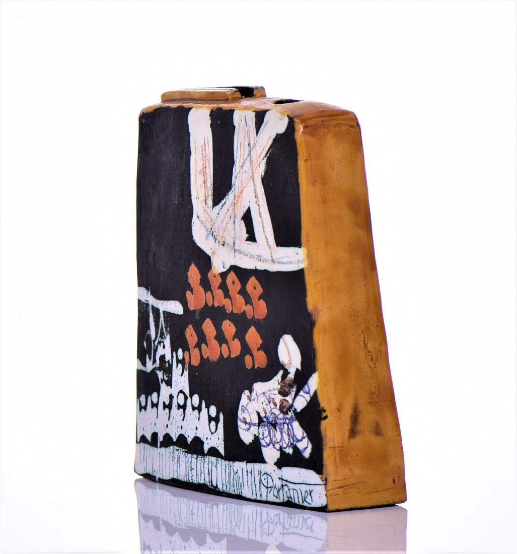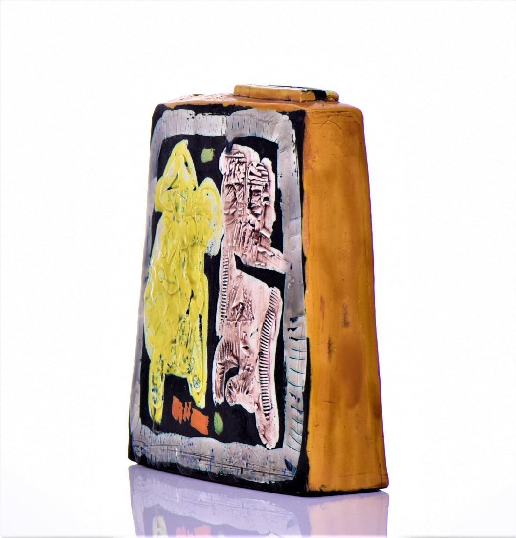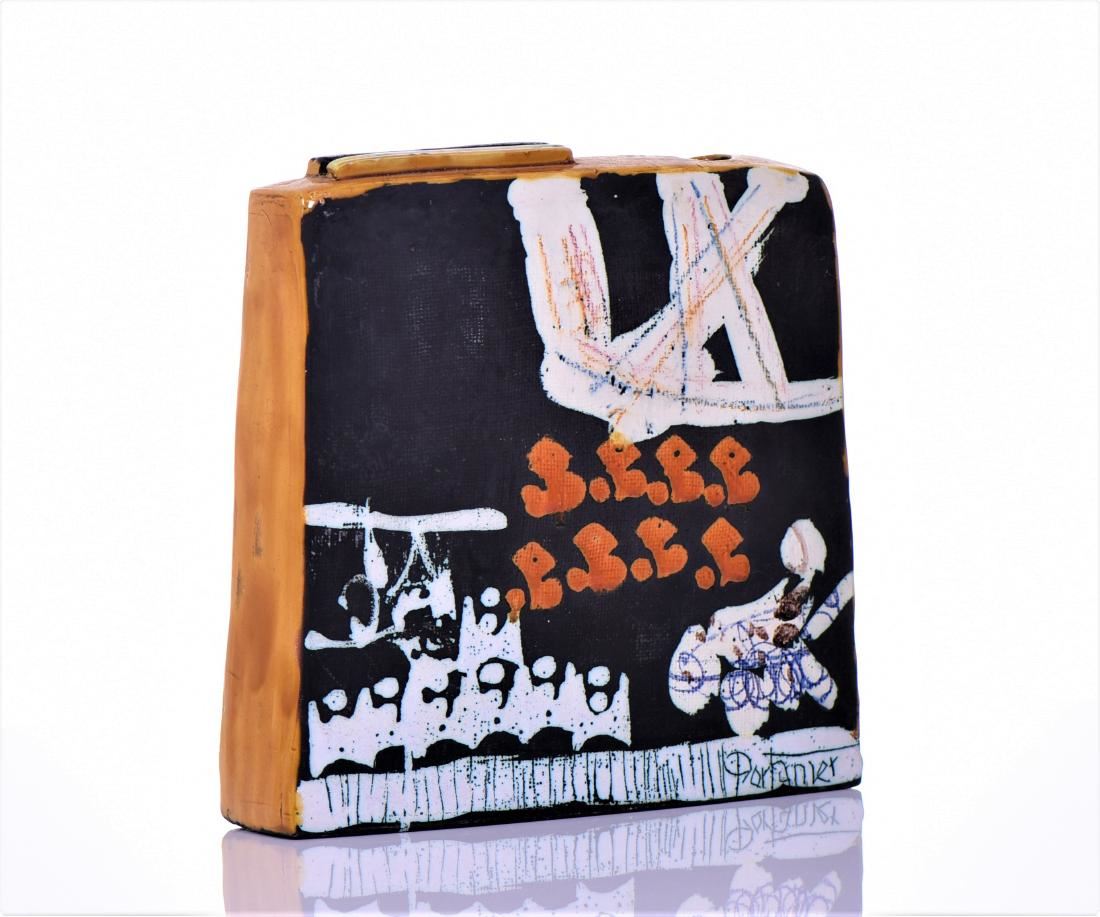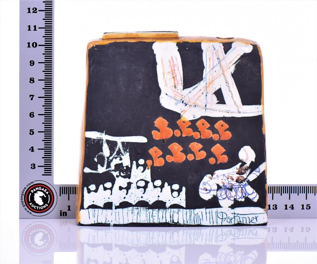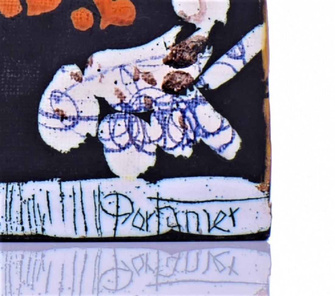 Gilbert Portanier, Mid-Century Modern glazed ceramic vase is an original art pottery ceramic vase by French ceramicist Gilbert Portanier, Vallauris, France, circa 1950. Signed on front right side. Portanier was born in the French Riviera and had a long career as a ceramicist, working in Brussels, Belgium and Paris and Vallauris in France alongside Picasso and for a time with Rosenthal china in Germany. A highly respected artist, his pieces are sought after by Collectors Worldwide. Estimated more than 50 yrs old. (Pangaea Auctions) Size and/or Weight: See Measurement Photo. (Photos Represent The Lot Condition.)