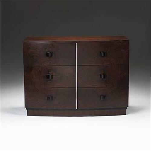 Gilbert Rohde dresser, model #3770 Herman Miller USA, c. 1940 Brazilian rosewood, mahogany, stainless steel 46 w x 20 d x 34 h inches Signed with manufacturer's label to interior drawer: [Made by Herman Miller Furniture Co. Zeeland Michigan Original Rohde Design].