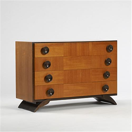Metal manufacturer's label to interior drawer. [Made by Herman Miller Furniture Co. Original Rohde design Zeeland Michigan]