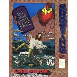 Gilbert Shelton - Poster for Set Your Chickens Free (No Publisher, 1974). Did you know that Gilbert Shelton, of The Fabulous Furry Freak Brothers fame, wrote a movie based on his "Set My Chickens Free" strip in the Feds 'n' Heads Underground comic? Did you know that this highly sought-after cult classic is practically impossible to find? Or that it starred Earl Pillow? Why of course you did! You also know how badly you want this cool promotional poster, advertising a showing at the legendary Bucktown Pub (home to the Underground Hall of Fame awards) in Chicago! It's a real mind-blower, drenched in trippy colors and crazy images. It's even signed by Shelton (who doesn't give autographs very often), in silver ink, no less! And with a measurement of 17" x 22", this will fill that blank area on your wall very nicely! Except for the least little bit of damage along the upper left corner, this is in excellent condition. Important notice: Heritage usually auctions material at the rate of 200-250 lots per hour. On some occasions eBay Live bid software or the Internet may not be able to keep up with the pace of the auction. We recommend placing a realistic absentee bid now as insurance to avoid disappointment. Occasionally the auctioneer may eliminate or reject an eBay Live bid, and the auctioneer may also reopen a lot after the close of the eBay live bidding (usually because we missed an audience bid), and may reject your bid even if it shows you as the winning bidder. By bidding via eBay Live, you agree that Heritage may award the lot to another bidder at its sole discretion under the circumstances described above or any other reasonable circumstances. Since eBay bids are not shown to us until we open the lot on the floor, we treat those bids just like floor bids. In most cases the floor responds before the eBay bid is presented to us, due to Internet lag time, so for consistency we have made it a policy that floor bids are always considered first over tie eBay live bids. Also please note that all Heritage lots purchased through eBay Live carry a 20% Buyer's Premium. Please make sure you read the Terms and Conditions before you bid.