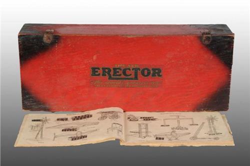 Description Includes original wooden box with black metal tray inside plus the original book which says "New Erector No. 77". Appears to be mostly complete and appears to build multiple wagons and pushcarts. Condition (Very Good). Size 21" x 8".