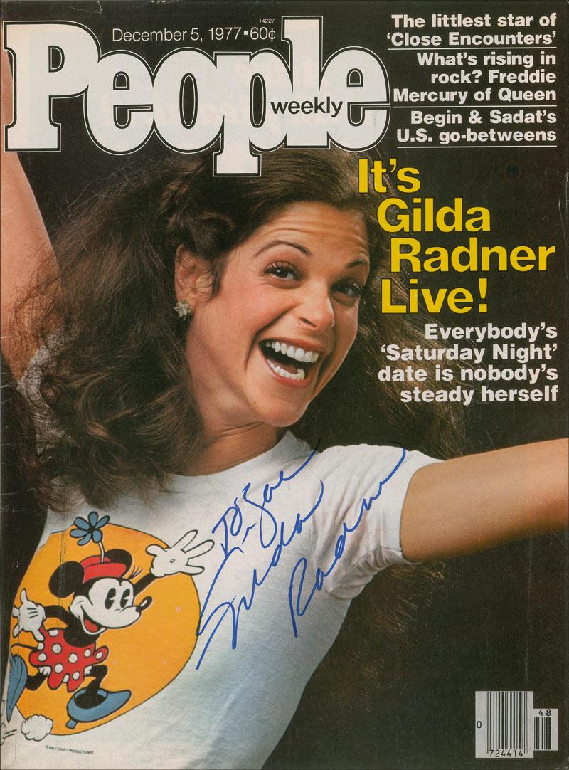 Magazine cover from the December 5, 1977, issue of People, signed and inscribed in blue felt tip, “To Joe, Gilda Radner.” In fine condition.