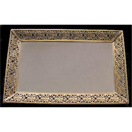 <tr><td>Title:Gilded Brass Openwork Mirrored Dresser Tray</td></tr>