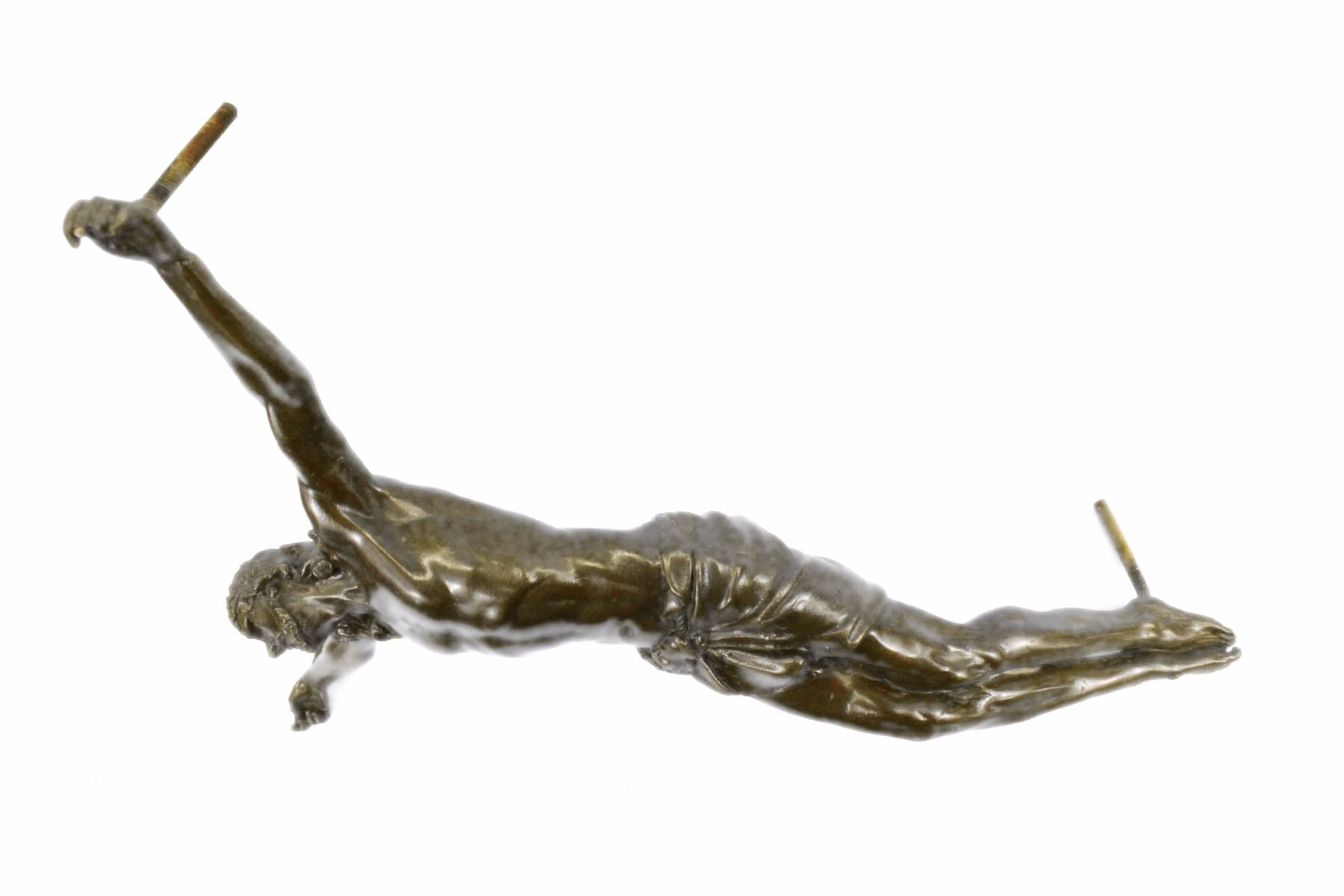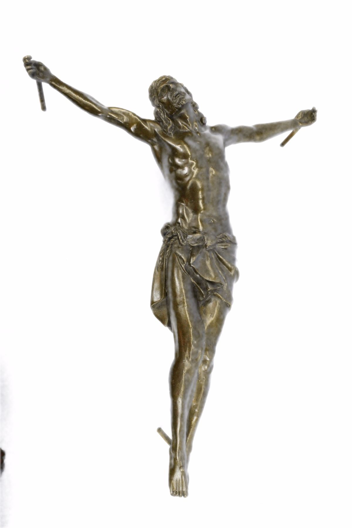 A Religious Wall Piece Perfect The Bless Your With The Sanctity Of Jesus Christ. It Is The Sculpture Of Jesus' Body As It Was On The Cross The Day He Was Crucified. He Looks Up To The Sky, At God, In His Dying Moment. In His Death On The Cross Jesus Was Taking The Death Consequence Of Sin For All Mankind. A Religious Symbol For Religious Collectors And Christians This Sculpture Will Add Spiritual Inspiration. This Sculpture Was Crafted Using The Lost Wax Method. Bronze dimensions: Height 16 X Width 12 inches. Weight: 7 lbs. Please Note: This is a reproduction bronze sculpture from the original molded and signed. This featured bronze sculpture is a recast after the original, and has been done recently. This 100% bronze sculpture is an abstract piece certain to be a conversation piece.