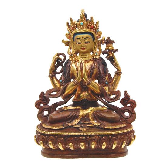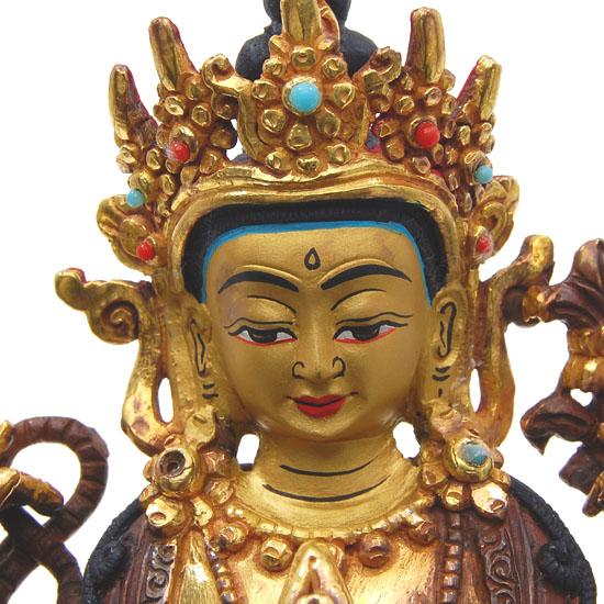 Excellent vintage gold plated hand painted Tibet piece; 6"