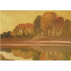 'Trees in a Row' reflexion on water Gilles "Originallin" D'Astous 12 high x 16 inches original painting, wood frame 20 high x 16 inches, for your home or cabin, or give ;