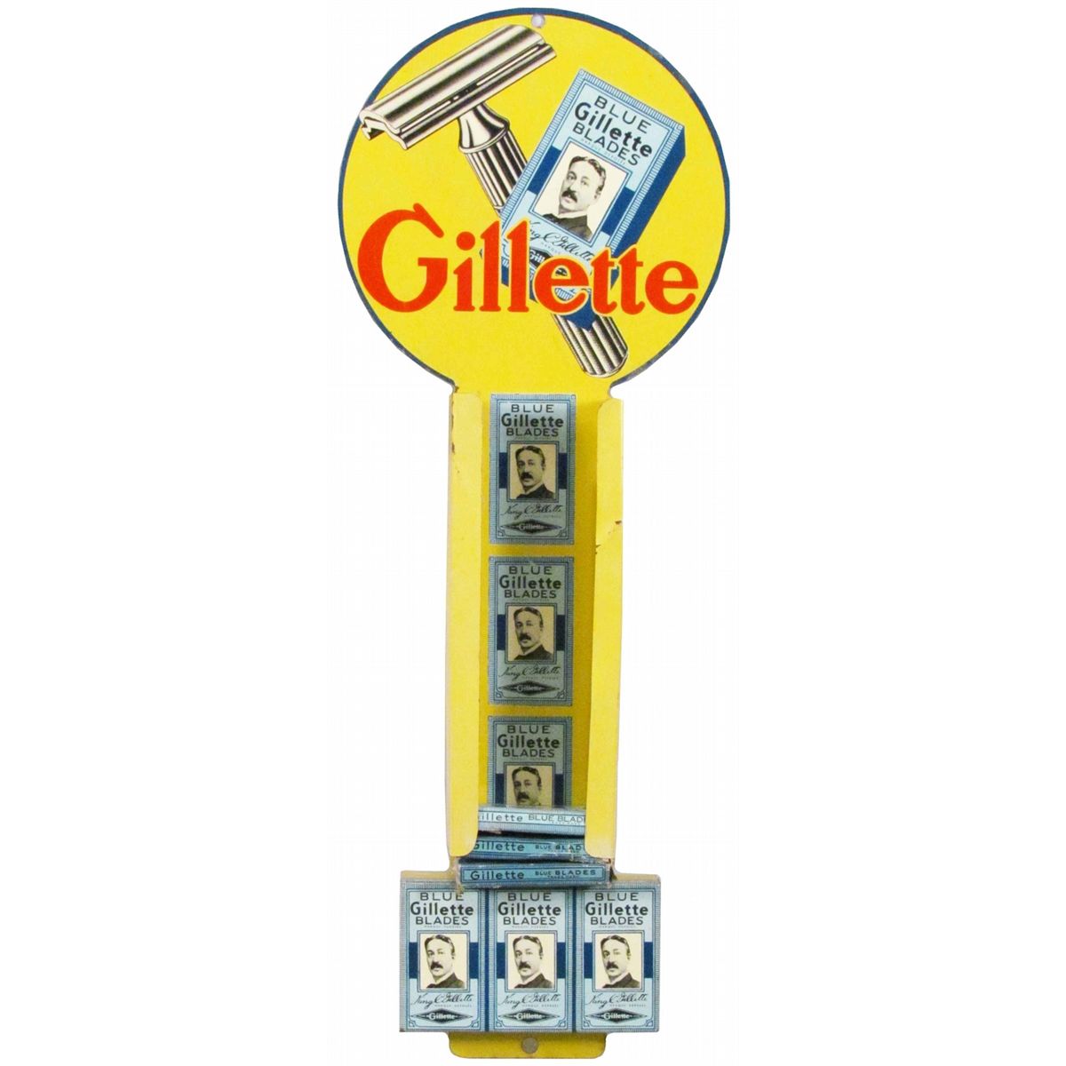 Gillette Blades Tin Store Display. Comes 3 packs of blades. Excellent condition. 3 1/4 X 13 1/2 X 1 inches.