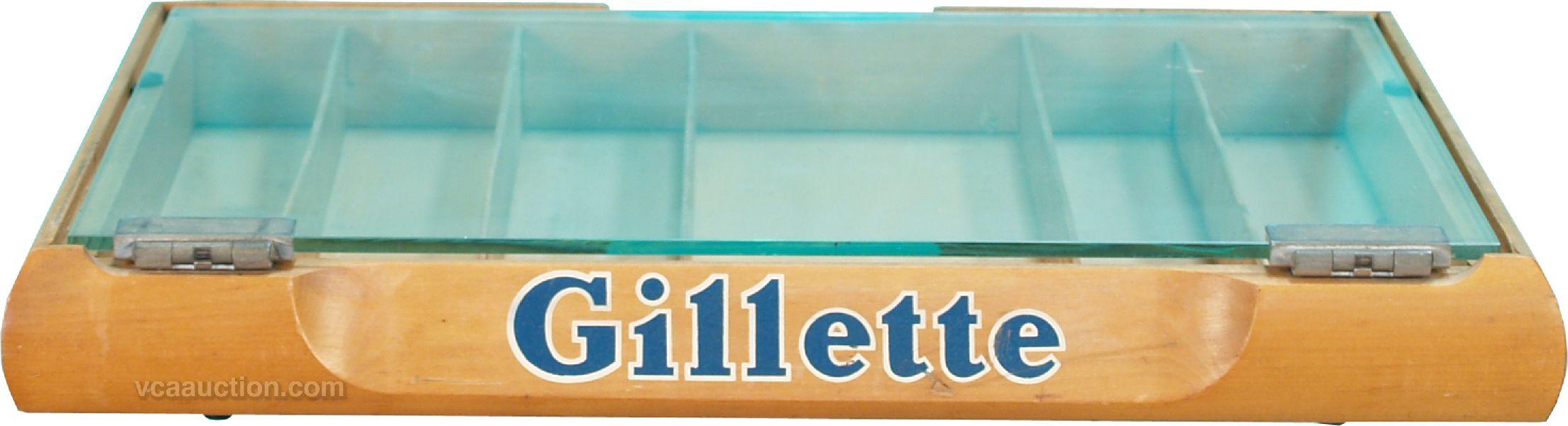 Gillette Razor Store Countertop Wood & Glass Display Case c1940's.