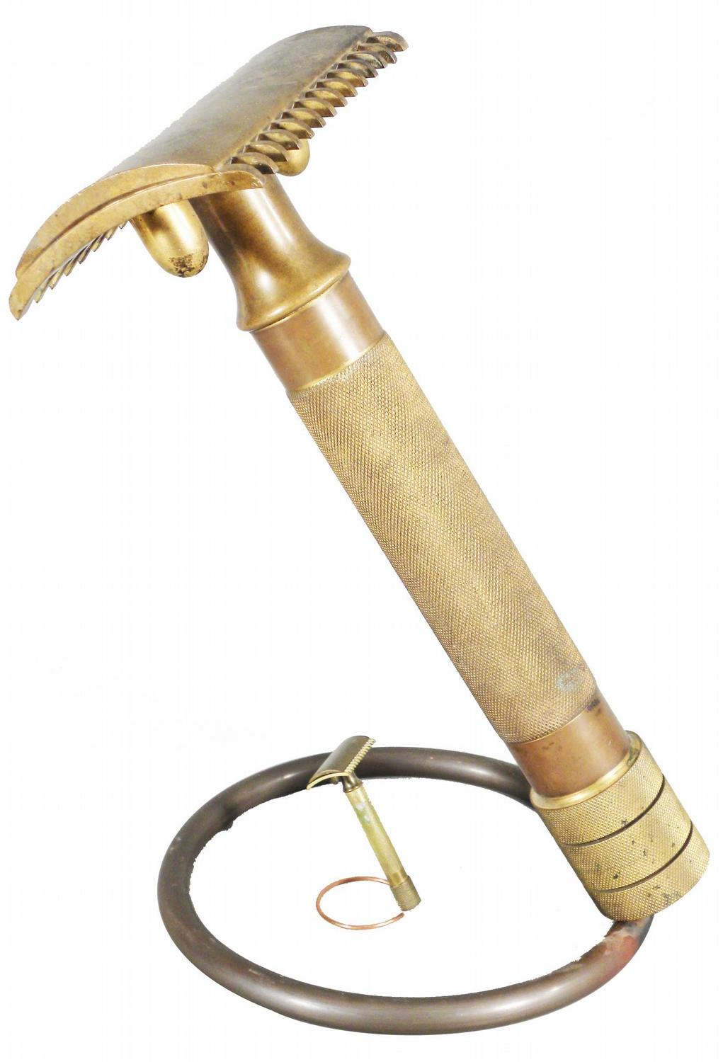 Gillette Safety Razor Store Display. Brass with iron base. Comes with identical "actual size" razor. Display measures 17 inches long.