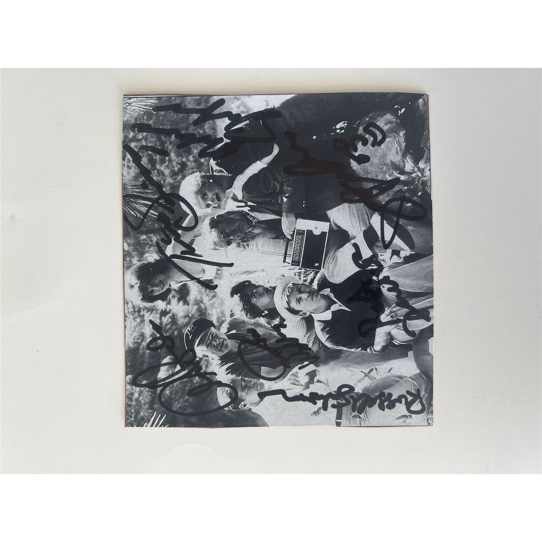 Gilligan's Island cast signed photo autographed by Bob Denver, Alan Hale Jr., Russell Johnson, Dawn Wells, Tina Louise, Jim Backus and Natalie Shafer. 5x6 inches