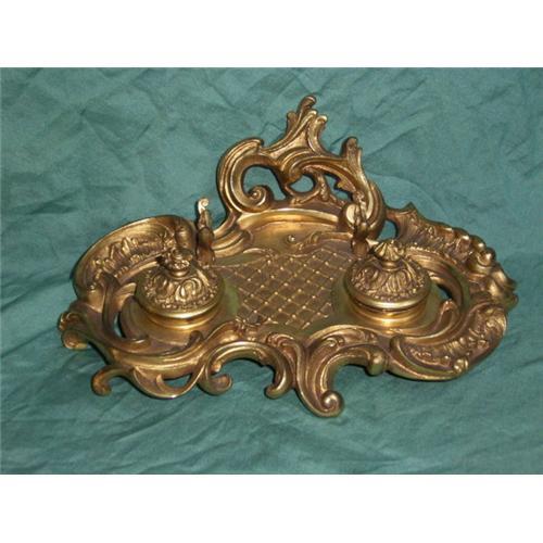 <tr><td>Title:Gilt Bronze Roccoco Inkwell</td></tr>